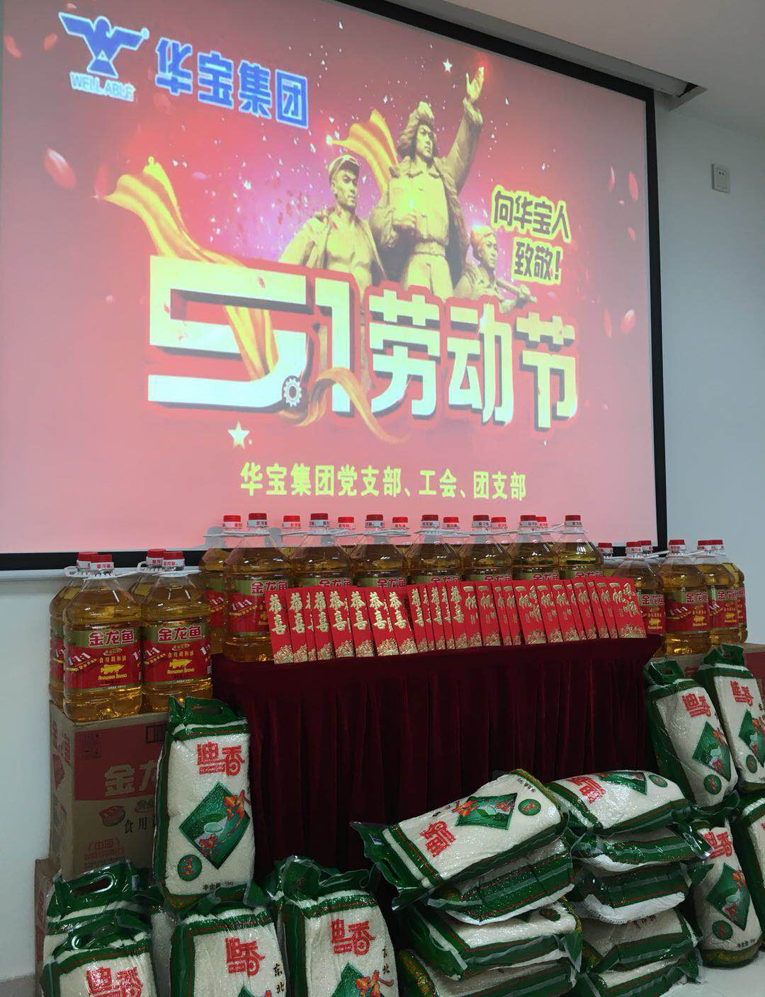 2018年4月28日,“五一”勞動節(jié)前夕,在華寶集團黨工團的指導(dǎo)下,華寶集團舉行了慶“五一”困難職工慰問大會,對各廠參會的職工發(fā)放慰問金和慰問品。集團工會主席師體偉和副主席陳云偉分別發(fā)表講話,對困難職工表示親切的關(guān)懷和慰問,職工代表發(fā)言表達對公司的感謝。