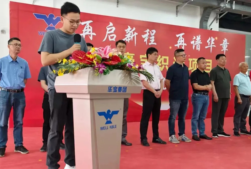 “織機2000臺,同時引入自動掛紗、自動落布,可以極大地提高生產效率和提供更優質的產品,在實現智能化管理的同時,爭取成為行業智能化的標桿。”豪寶織造廠總經理助理劉永豪在致辭中說道。豪寶織造廠的發展是華寶集團實現產業鏈升級,提高核心競爭力的關鍵所在,他表明將在未來與各位同事攜手并進,共同奮斗,創造華寶集團更加輝煌的明天!