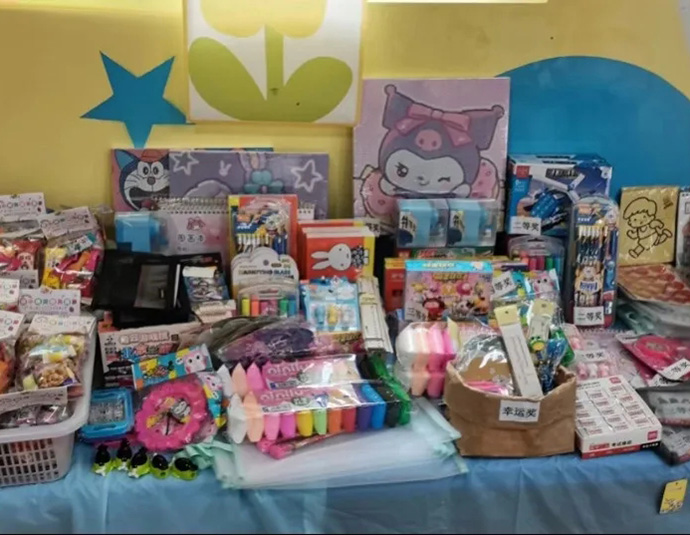 “四點(diǎn)半”活動(dòng)中心貼心地為小朋友準(zhǔn)備了許多小游戲,贏取禮品。 第一項(xiàng)游戲是扎氣球。每位小朋友都可以隨機(jī)扎破一個(gè)氣球,贏取藏在氣球里的小禮品。隨著一聲聲的“嘭”,小朋友興奮地?fù)炱饸馇蚶锏募垪l去兌換禮品。