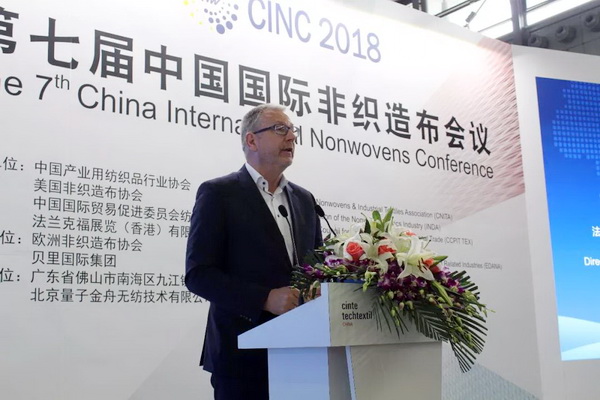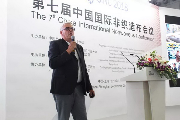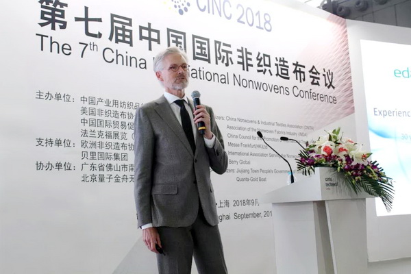 法蘭克福展覽有限公司產(chǎn)業(yè)用紡織品及紡織加工品牌總監(jiān)Michael. Janecke致辭時(shí)表示,CINTE一直致力于為全球產(chǎn)業(yè)用紡織品企業(yè)搭建公開(kāi)公平公正的交流平臺(tái),本屆展會(huì),海外展商的數(shù)量達(dá)到歷史新高,他們也帶來(lái)了領(lǐng)先的創(chuàng)新產(chǎn)品,可以與國(guó)內(nèi)產(chǎn)業(yè)用紡織品企業(yè)進(jìn)行更全面的貿(mào)易交流。盡管當(dāng)前國(guó)際形勢(shì)比較復(fù)雜,但非織造材料依舊保持了良好的發(fā)展前景,市場(chǎng)需求不斷提升,市場(chǎng)驅(qū)動(dòng)后勁十足。 Michael Janecke表示:“目前,70%功能性非織造材料的功能尚待完全開(kāi)發(fā),雖然說(shuō)網(wǎng)絡(luò)媒體日漸發(fā)達(dá),但我們依舊需要面對(duì)面的交流,去碰撞出更多的合作伙伴和創(chuàng)新想法,今天召開(kāi)的第七屆中國(guó)國(guó)際非織造布會(huì)議將從市場(chǎng)趨勢(shì)和產(chǎn)品應(yīng)用兩個(gè)方面探討行業(yè)發(fā)展,希望對(duì)于企業(yè)布局未來(lái)發(fā)展提供良好幫助。”