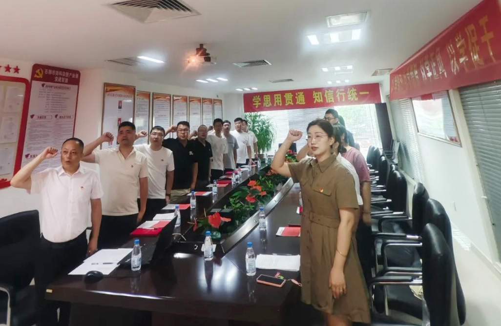 大會繼續進行,在鮮紅的黨旗下,全體黨員莊嚴舉起右拳,重溫入黨誓詞,鏗鏘有力的誓言彰顯了堅定不移的理想信念。隨后,大家集中觀看了中央八項規定警示教育片,師體偉書記為大家上了黨課,深入學習中央八項規定精神及實施細則,進一步強化紀律意識,筑牢廉潔防線。